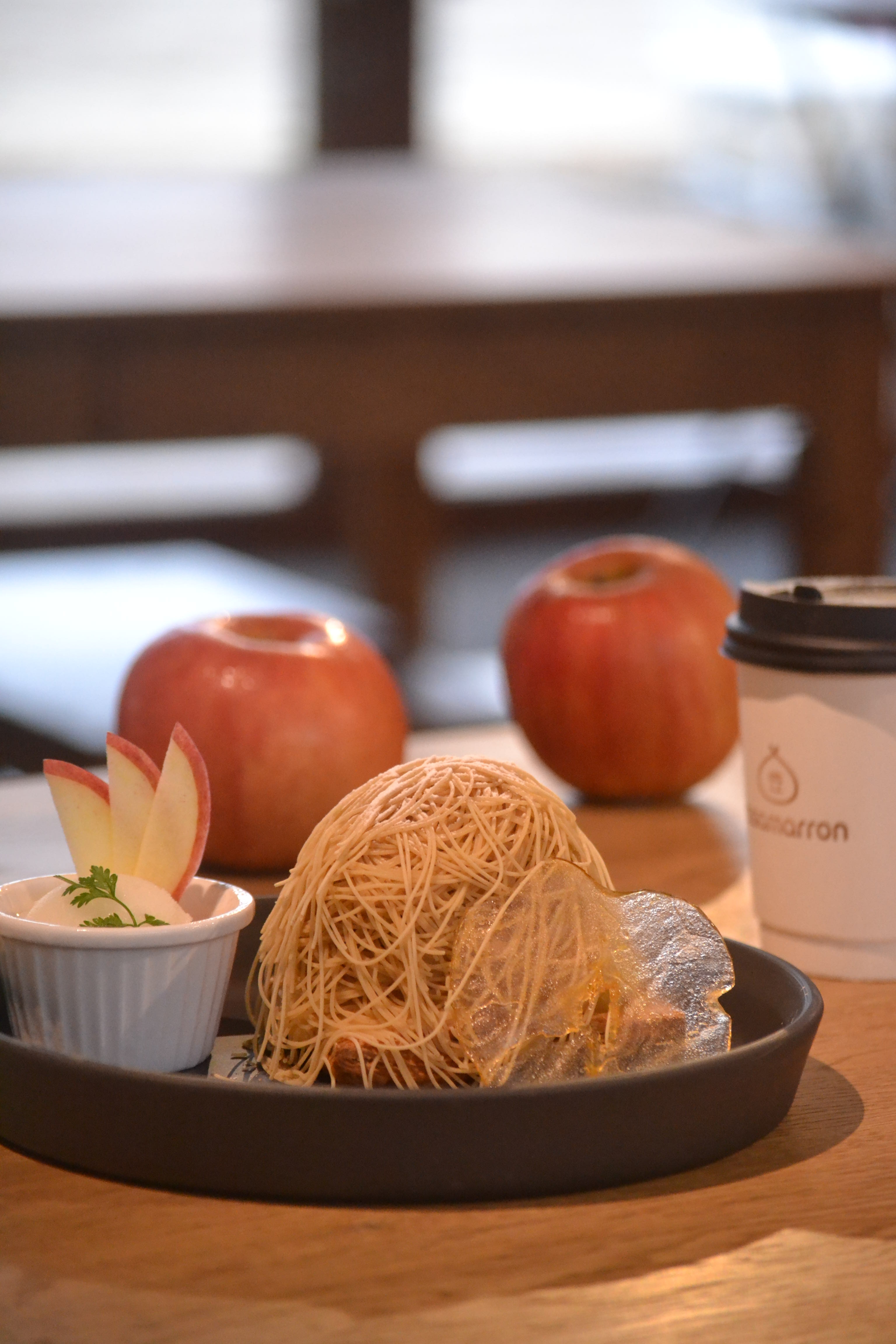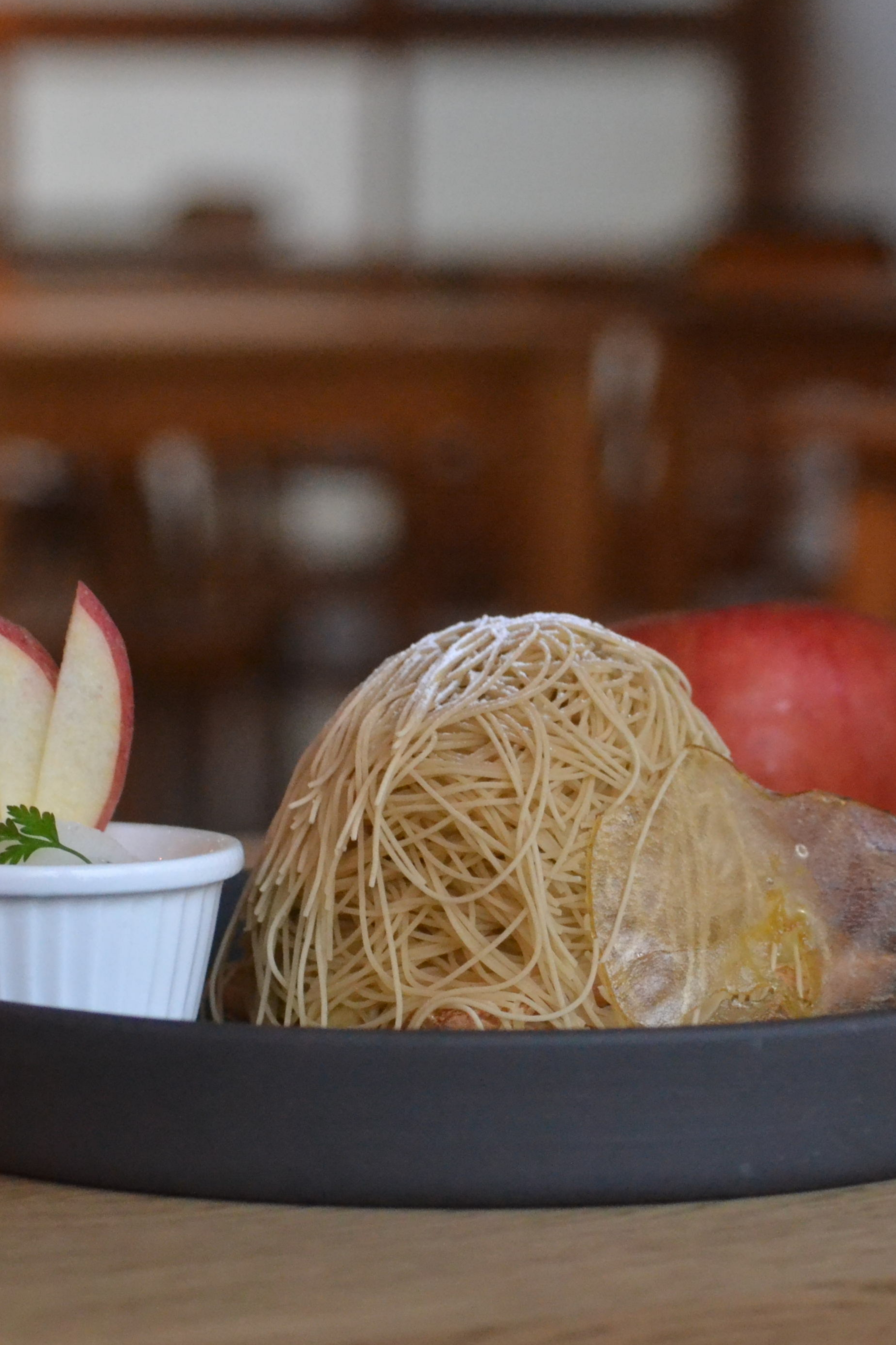 仕上げにはフレッシュなりんごと、透明感のあるクリスタルポムを添えて、冬らしいきらめきを演出しています。