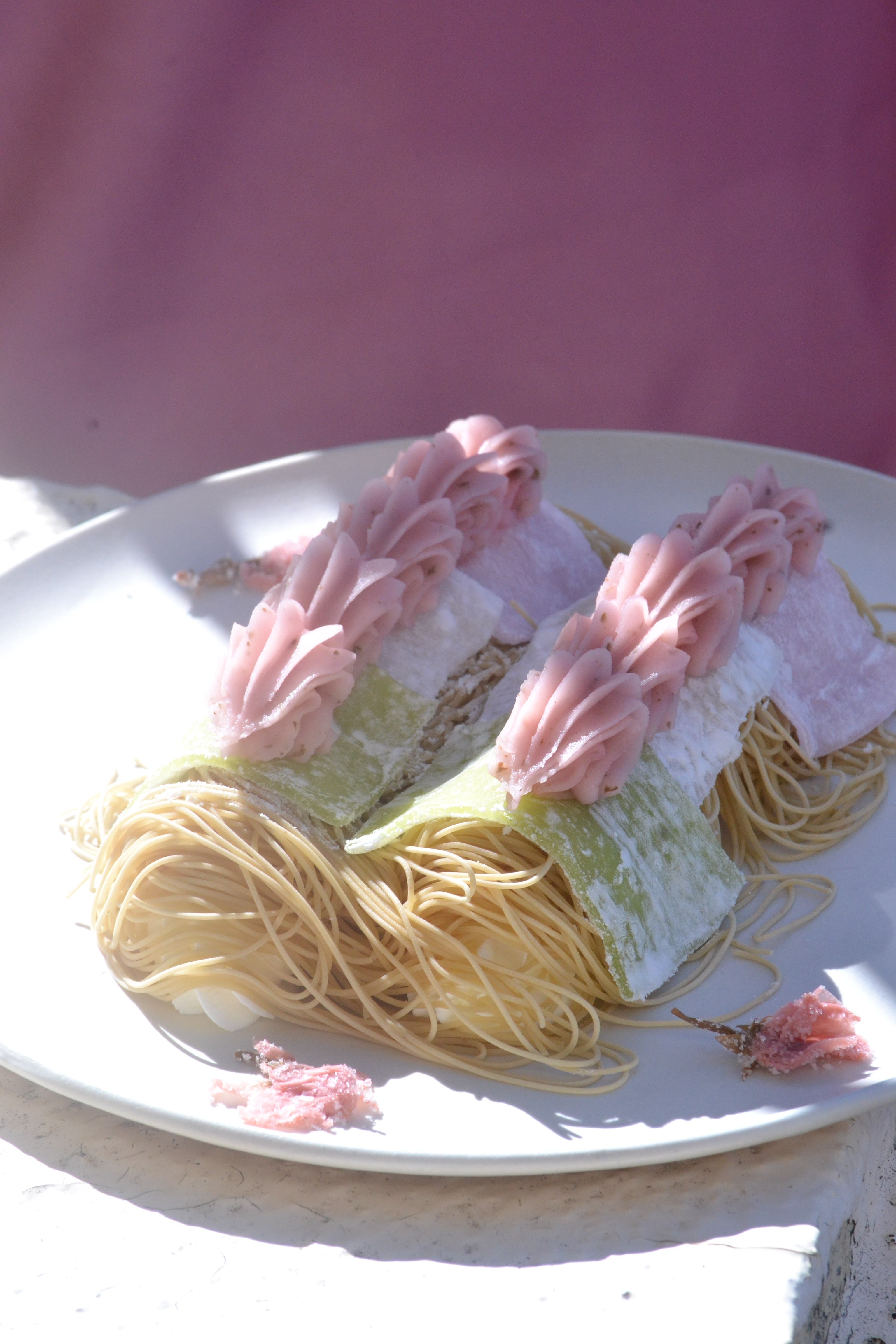 お皿には桜の塩漬けをあしらい、和のやさしい余韻を添えました。