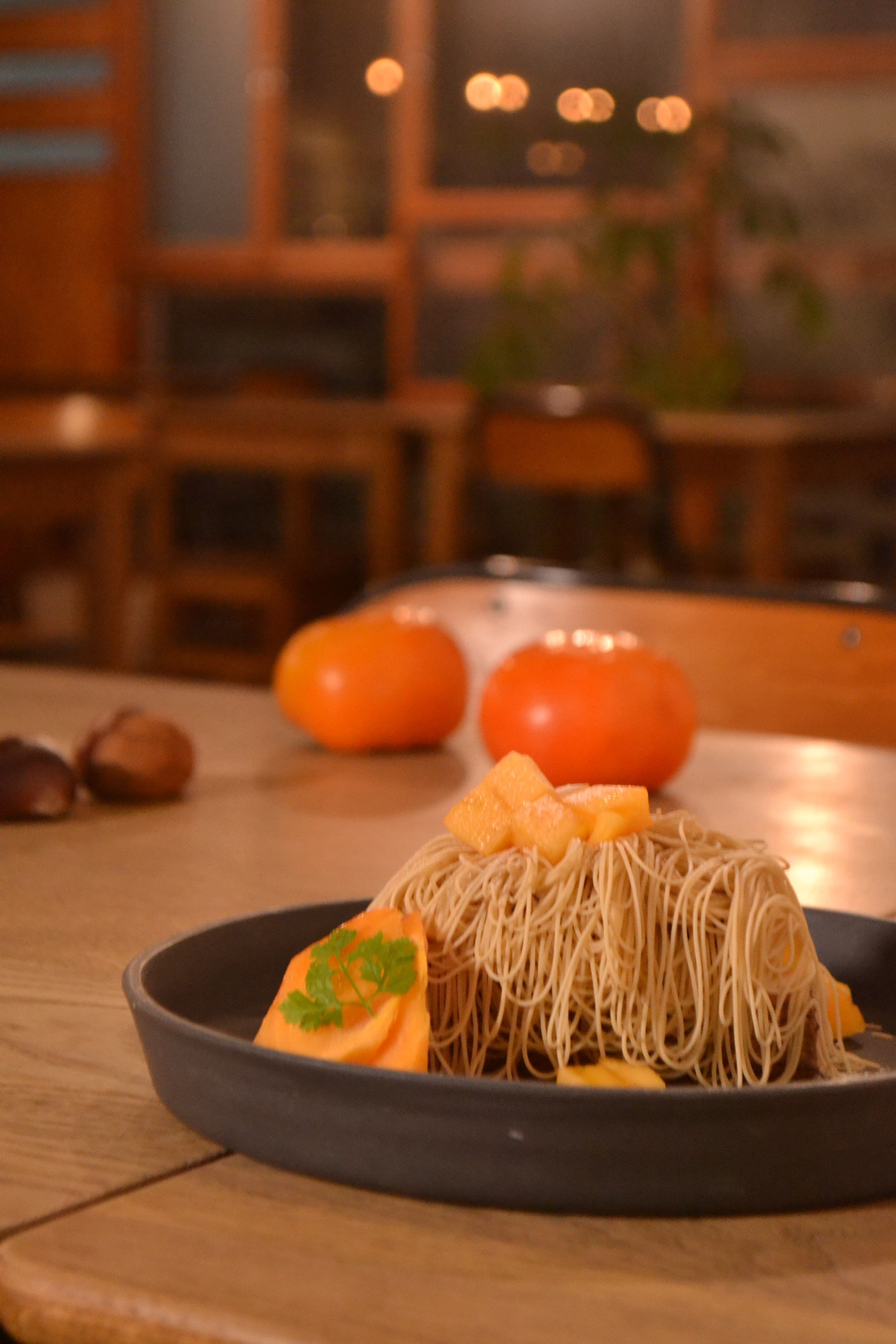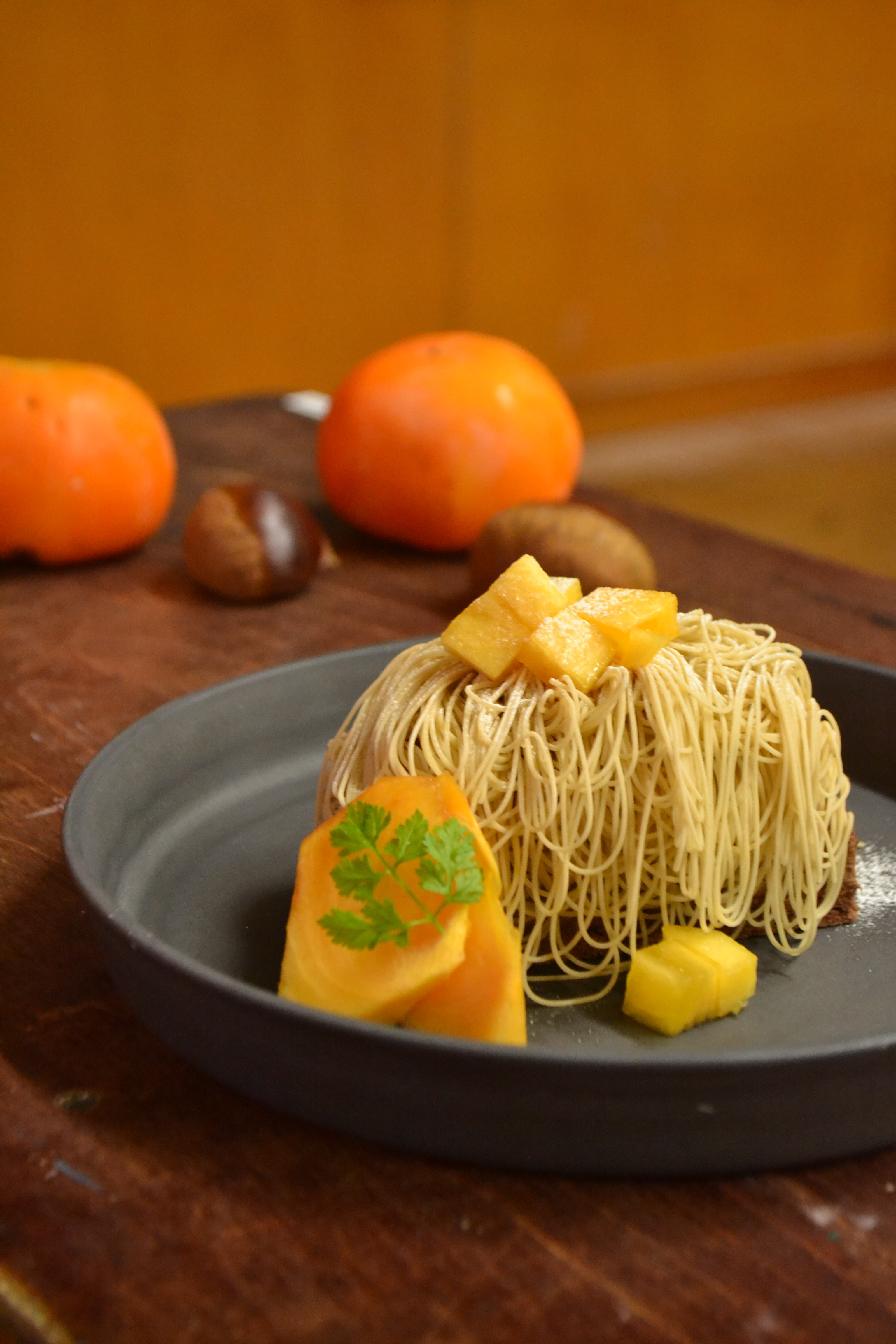茨城県の銘品「献上柿」を贅沢に使った、秋の味覚あふれるモンブラン。